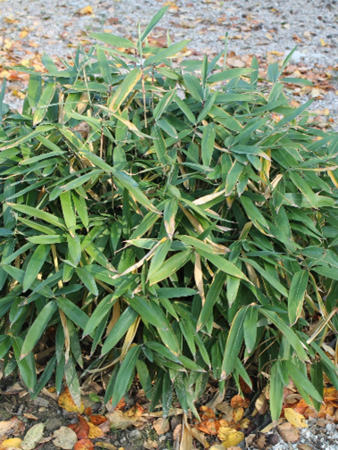 Bambus ten został sprowadzony do Europy już w połowie XIX w z Japonii. To niska, zimozielona trawa ozdobna, zwana również bambusem pstrym. Tworzy gęstą kępę, dorastającą do około 50-80 cm, a rozmnaża się poprzez podziemne rozłogi. Dobrze znosi mrozy i nie ma specjalnych wymagań. Najlepiej mu jednak jest w glebie umiarkowanie wilgotniej, o lekko kwaśnym odczynie, na stanowisku półcienistym i osłoniętym od wiatru. Warto przyciąć go wiosną, aby poprawić walory dekoracyjne i pobudzić do wzrostu. Mimo rozłogowych kłączy nie należy do bardzo inwazyjnych gatunków. Stosowany jest przede wszystkim jako roślina okrywowa.