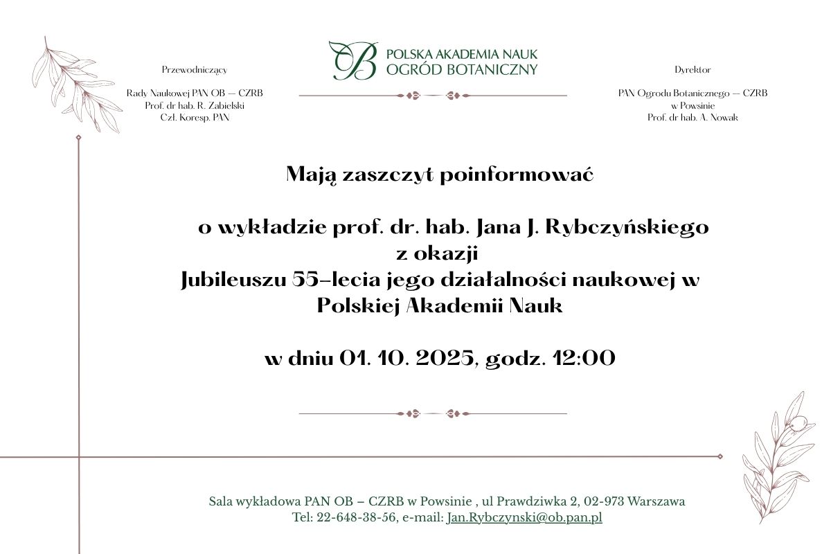 We are pleased to announce a lecture by Prof. Dr. Jan J. Rybczynski on the occasion of the 55th anniversary of his scientific activity at the Polish Academy of Sciences.