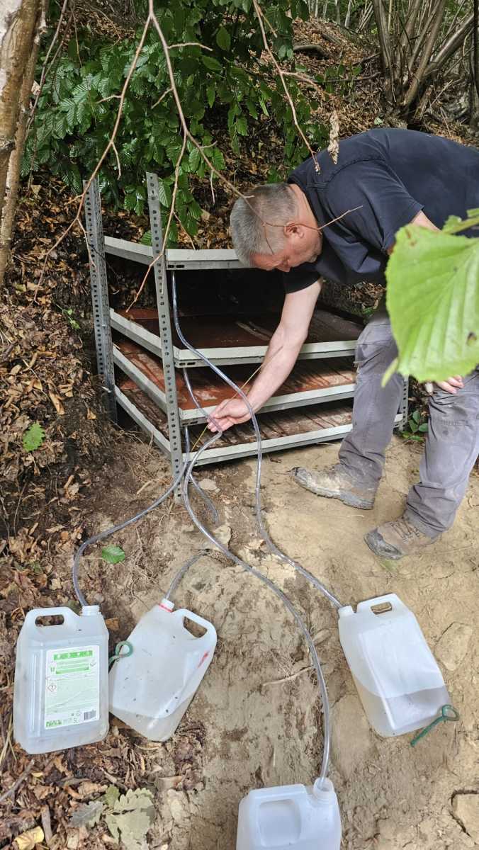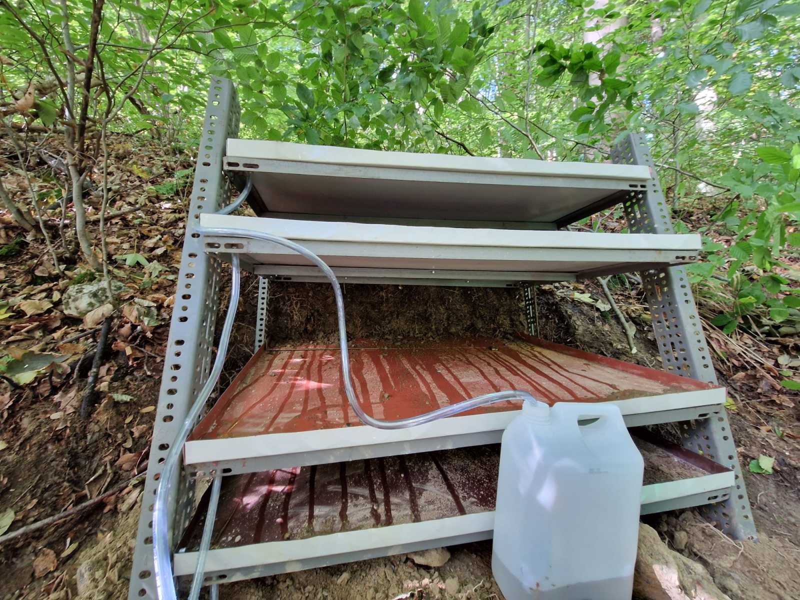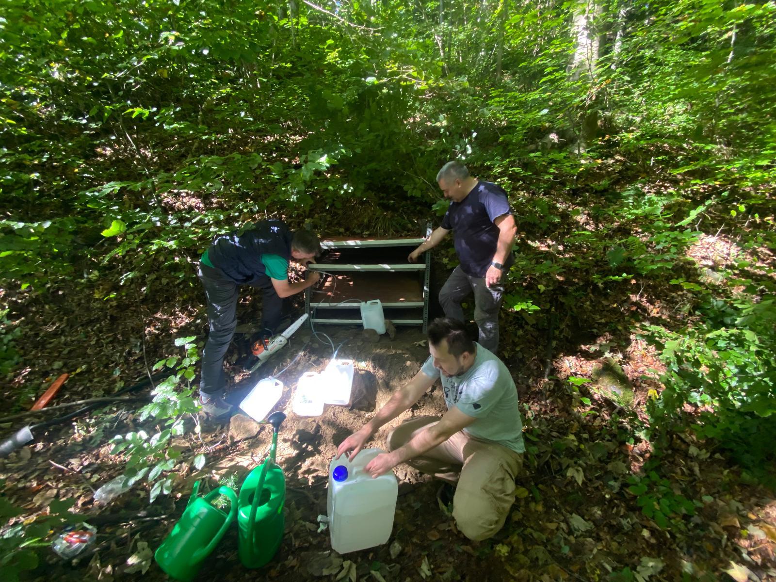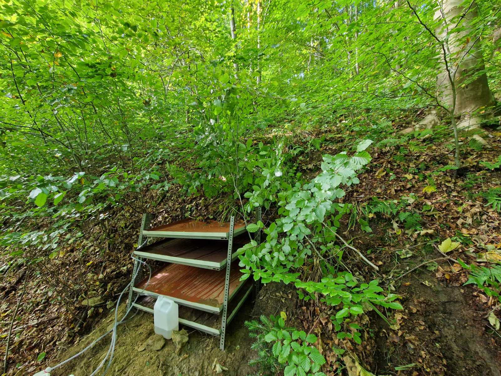 The experiment was to see what the difference is between ecosystem retention in a natural deciduous forest and anthropogenic deciduous forest. We made two soil pits in which a special author's structure, the so-called water collector, was embedded.